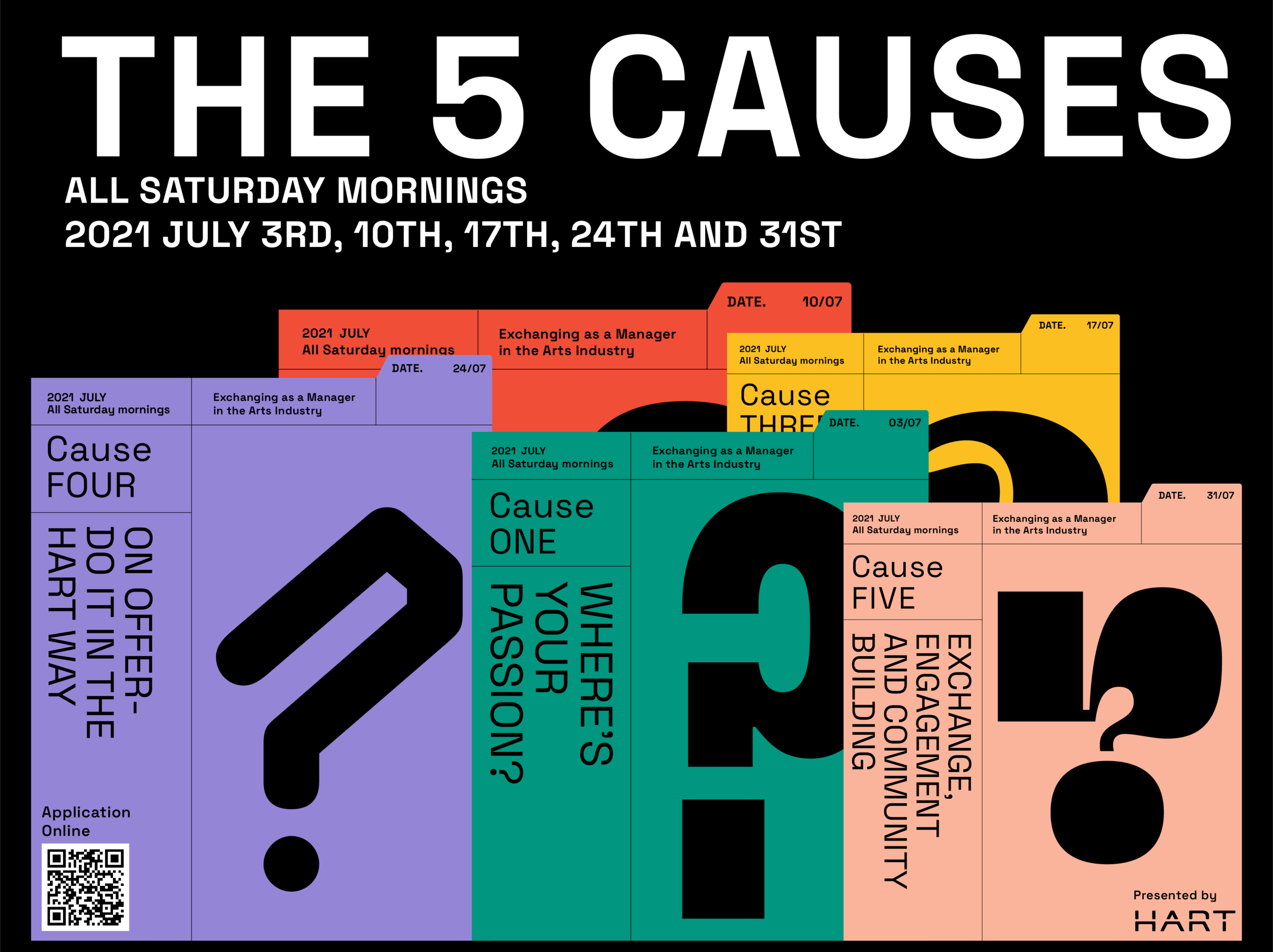 Continuing the topics covered in "The 5 Courses" - Sharing as a Manager in the Arts Industry conducted last year, we would like to re-run the journey to engage interested parties as well as with those who missed the last round of courses. Titling this as The 5 Causes, we expect participants to initiate their own exploration in these topics before and after completion of this co-created experience: