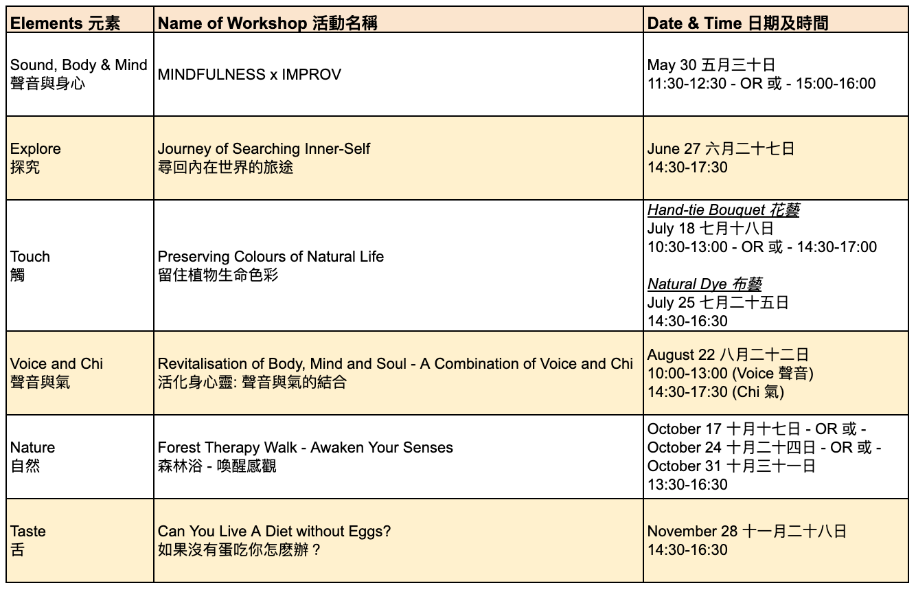 這個計劃沒有固定的課程表 —— 歡迎你根據自己的興趣和需要,參加任何一個或多個工作坊,享受為你度身定造的計劃。