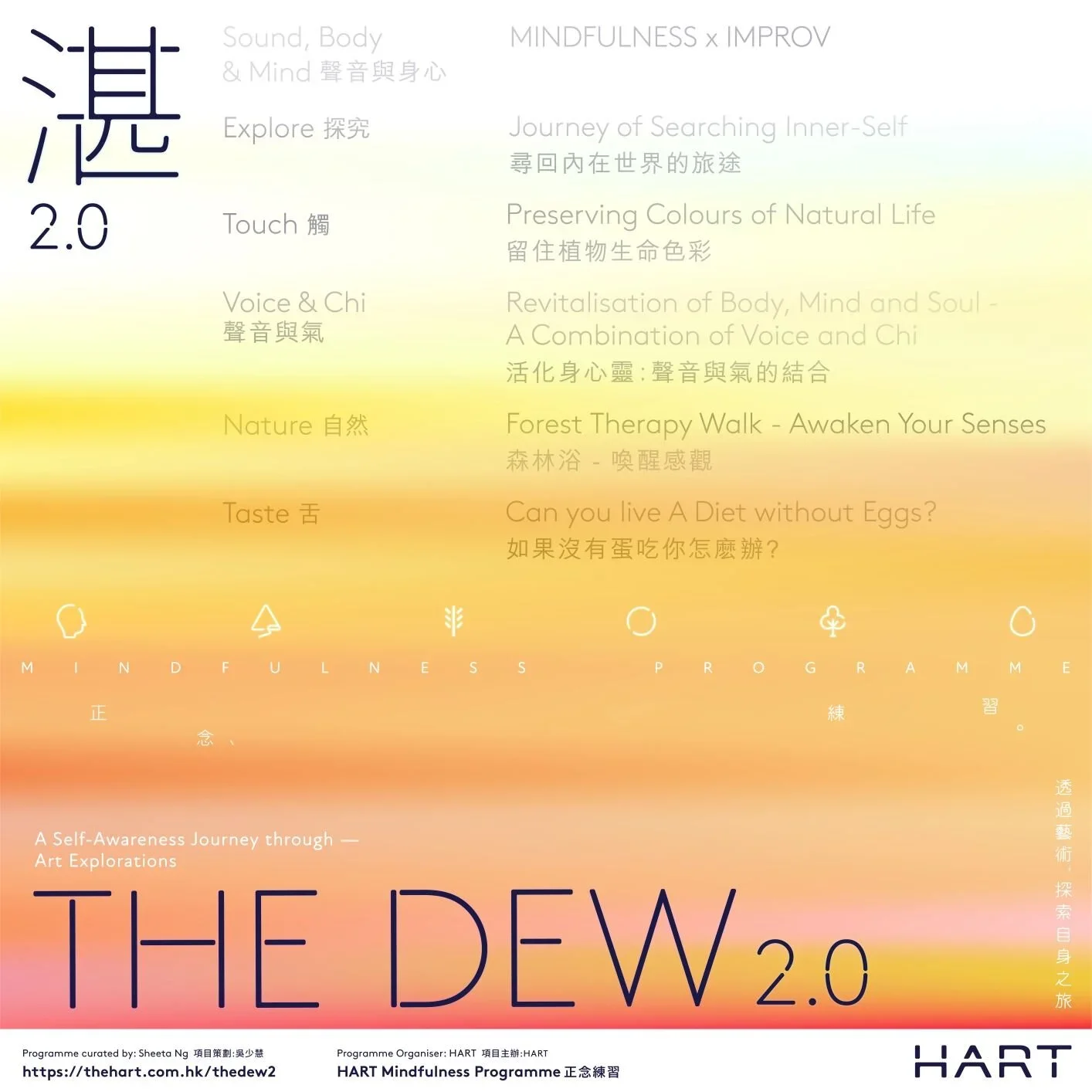 Our mindfulness programme The Dew is coming back in the second half of 2021. A programme curated by our Partner Hausian Sheeta Ng, The Dew is a series of six workshops which allow participants to grow self-awareness through art explorations in different areas. By practicing art using our different senses, participants can understand more about themselves, readjust their focuses, and transform creativity into positive energies in life.