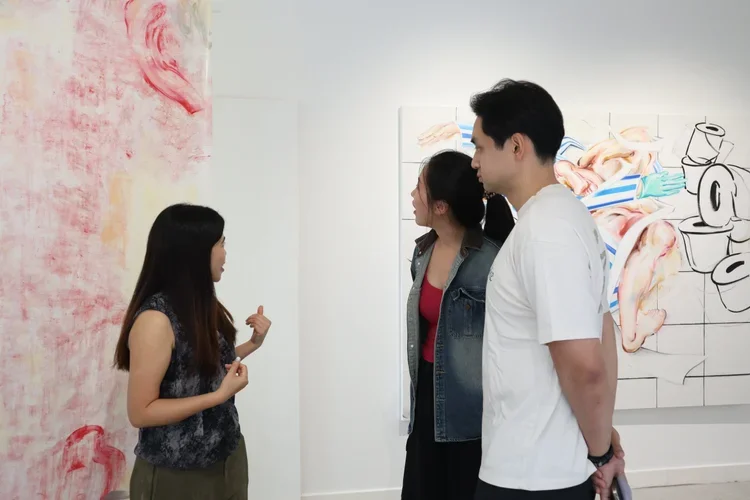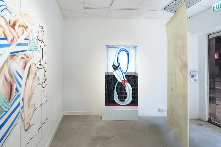HART Haus is pleased to present “Möbius Loop”, Yvonne Feng’s debut solo exhibition in Hong Kong, following the Guangdong‑born, UK‑raised visual artist’s relocation to the city last year. The exhibition features works from Feng’s ongoing painting series Docile Bodies, a trilogy of exhibitions exploring the theme through barrier, gesture, and sight. This presentation focuses on gesture, examining the intricate entanglement between the body and the spaces it inhabits. The works are exhibited in the ground‑floor gallery, where the interplay of interior space and street‑facing windows blurs the boundaries between strangers and intimacy, between watching and being watched, echoing the staged realities in Feng’s paintings.